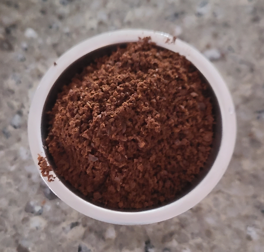 이제 갈아놓은 커피가루를 넣습니다. 많이 넣지 말아주세요. 안그러면 원액이 제대로 나오지 않습니다.