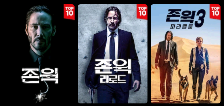 존윅 1~3가 나왔던 OTT는 넷플릭스입니다. 주말에 정주행 해봤습니다! 잔인하고 무자비한 액션이었습니다.