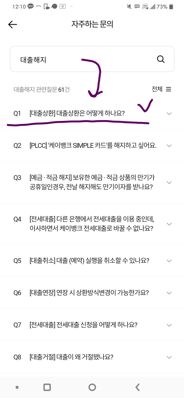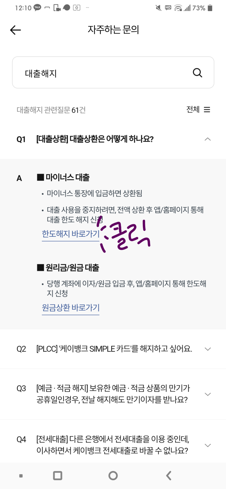 '대출 해지' 검색하고
