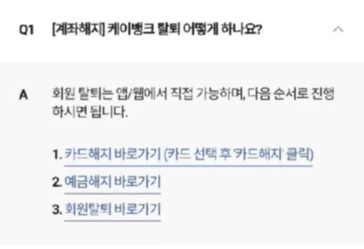아래 이미지처럼 카드해지, 예금해지, 회원탈퇴