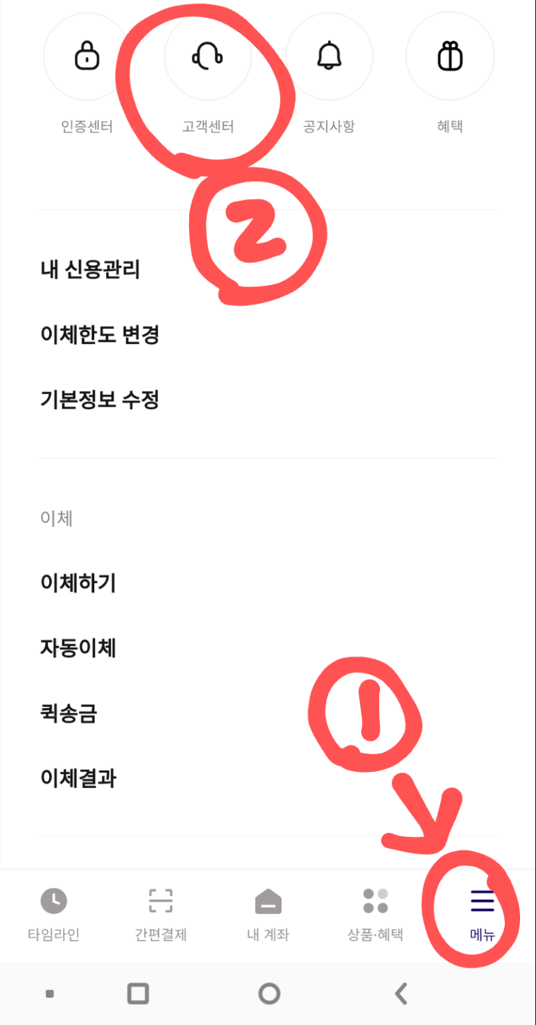 2. 고객센터를 누릅니다.